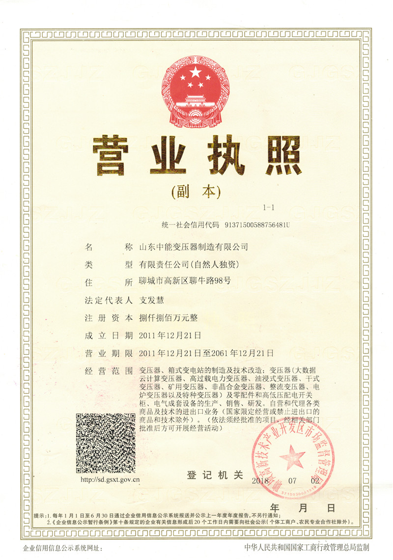 荣誉资质_酒泉中能变压器厂家